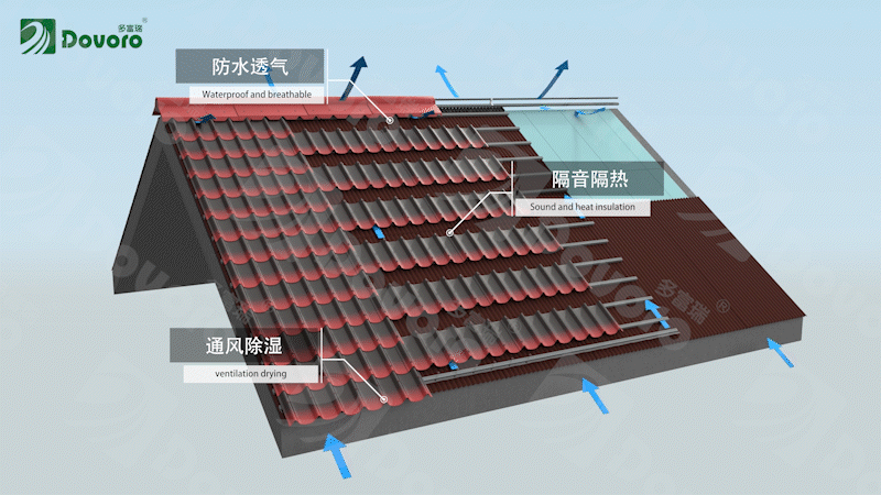 空氣是流通的,屋面的溫度就不容易傳遞到下方的空間。同時有助于降低屋面瓦的表面溫度,延長屋面使用壽命。