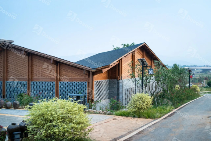 項目中的芳華小院、黨群服務(wù)中心、劉寅紀(jì)念館為全木結(jié)構(gòu)建筑,采用了幻影波形瀝青瓦,達到整體風(fēng)格造型的統(tǒng)一。