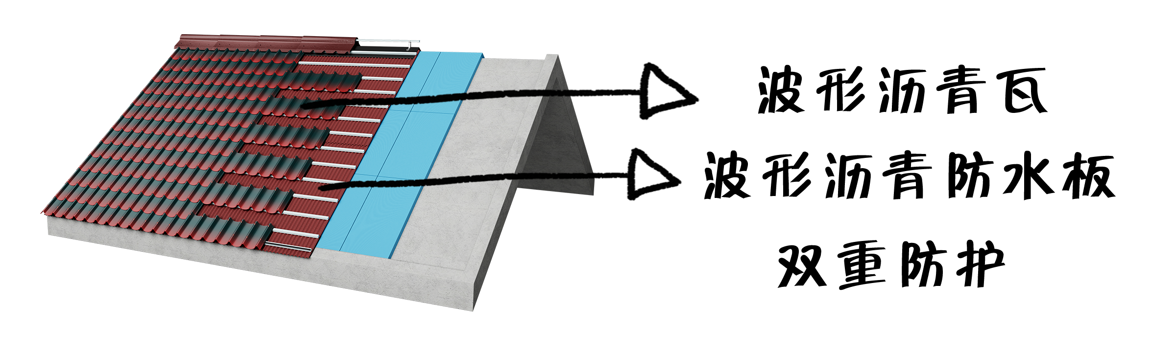 使用波形瀝青防水板作為防水墊層,在遇到極端暴雨的情況下,即使有部分雨水來(lái)不及排出屋面,從上層瓦材滲入下方,也可以通過(guò)波形瀝青防水板繼續(xù)排出屋面。相當(dāng)于一個(gè)屋頂上有兩層屋面,雙重防水。