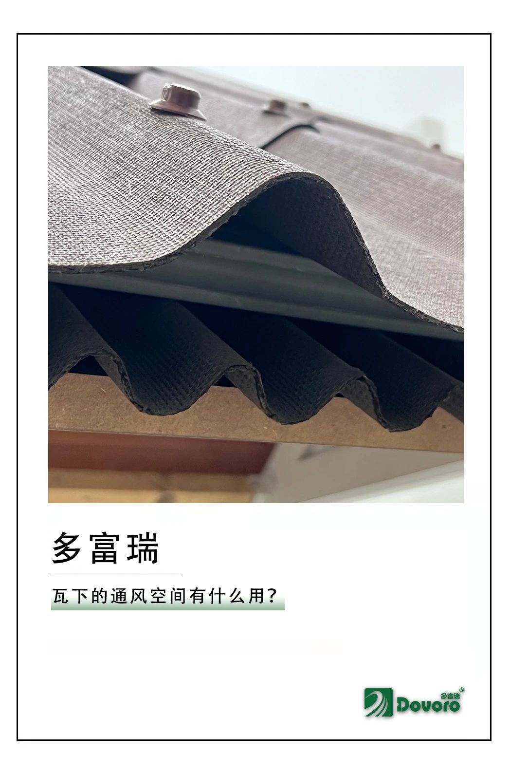 得益于多富瑞輕質坡屋面系統的立體構造,在上層的波形瀝青瓦與下層的波形瀝青防水板之間,有著每平方米200cm³的通風通道。