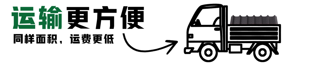 輕質(zhì)的材料對(duì)運(yùn)輸有十分重要的影響。更輕的重量,就意味著同樣面積的瓦材,波形瀝青瓦的運(yùn)費(fèi)更低,運(yùn)輸更方便。