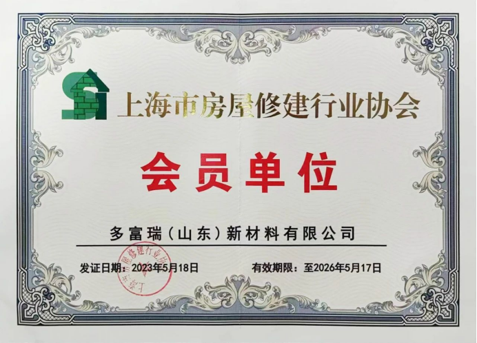 2月,加入上海房屋修繕協會和上海市房屋修建行業協會,體現多富瑞積極為客戶提供高質量產品和全方位服務的決心、信心,同時也是提升產品知名度的重要舉措之一。