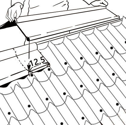 根據掛瓦條安裝位置彈線,用專用瓦釘將瓦材固定在掛瓦條上,瓦釘固定在波峰處,并垂直于屋面。